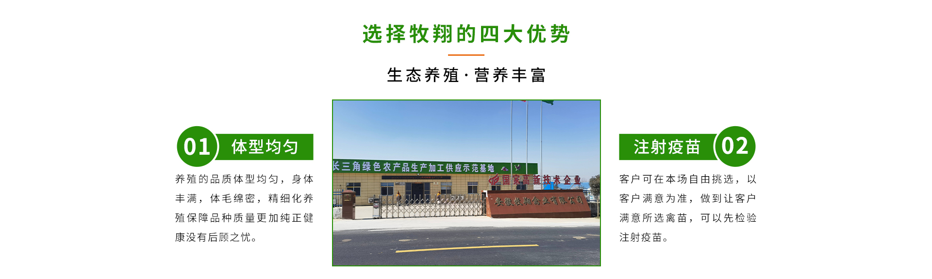 安徽牧翔禽业有限公司坐落于霍邱县石店镇,是一家专业从事霍邱麻黄鸡保种、繁育、蛋鸡养殖、销售为一体的省级农业产业化重点著名企业。公司始建于1988年,于2011年注册成立注册资金1000万元,固定资产投资达到6800多万元,拥有职工120人,其中博士3人、高端畜牧师2人。下辖种鸡场、蛋鸡养殖场、孵化场、饲料厂、有机肥厂、技术服务中心等近十个创业实体。申请发明专利20余项,授权发明专利6项;申请实用新型技术8项,授权6项;申请外观设计专利1项。
